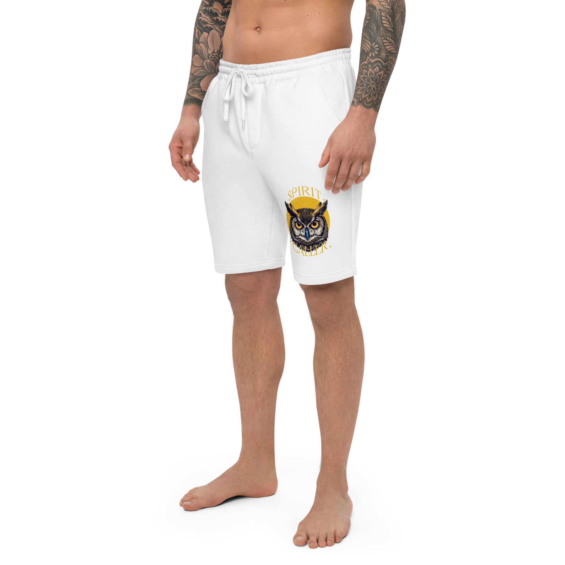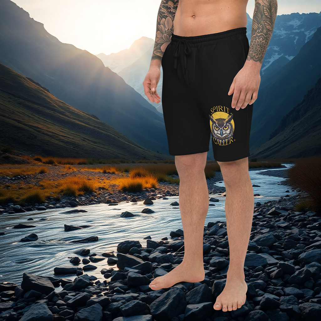 Even in moments of rest, the wilderness calls. These fleece shorts feature a powerful "Spirit Caller" design with the intense gaze of an owl, reminding you of the ancient wisdom that permeates the Olympic Peninsula. They're designed for the man who balances rugged adventure with grounded comfort. Crafted from an ultra-soft blend of 80% ring-spun cotton and 20% polyester (with a cotton face yarn for supreme comfort), these 8.5 oz/yd² shorts are perfect for unwinding after a long trail or a casual foray into town. With a relaxed fit, elastic waistband with a shoestring drawcord, a back pocket, and jersey-lined hand pockets, they offer both utility and laid-back style. Whether you're calling forth inner strength or simply calling it a day, these shorts are your go-to.