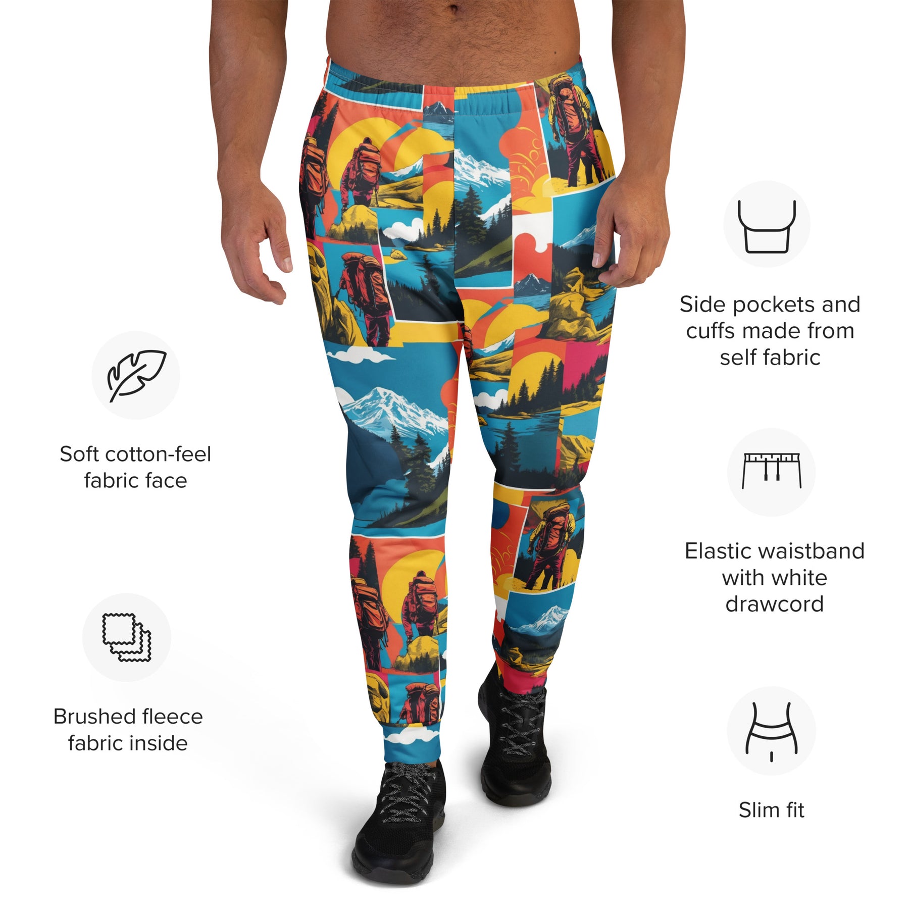 Where the trail meets the canvas, these joggers bring the wild to your wardrobe. The Pop Art mountain backpacking design is a bold ode to the rugged spirit of the Olympic Peninsula, where every step is a brushstroke in the story of adventure.