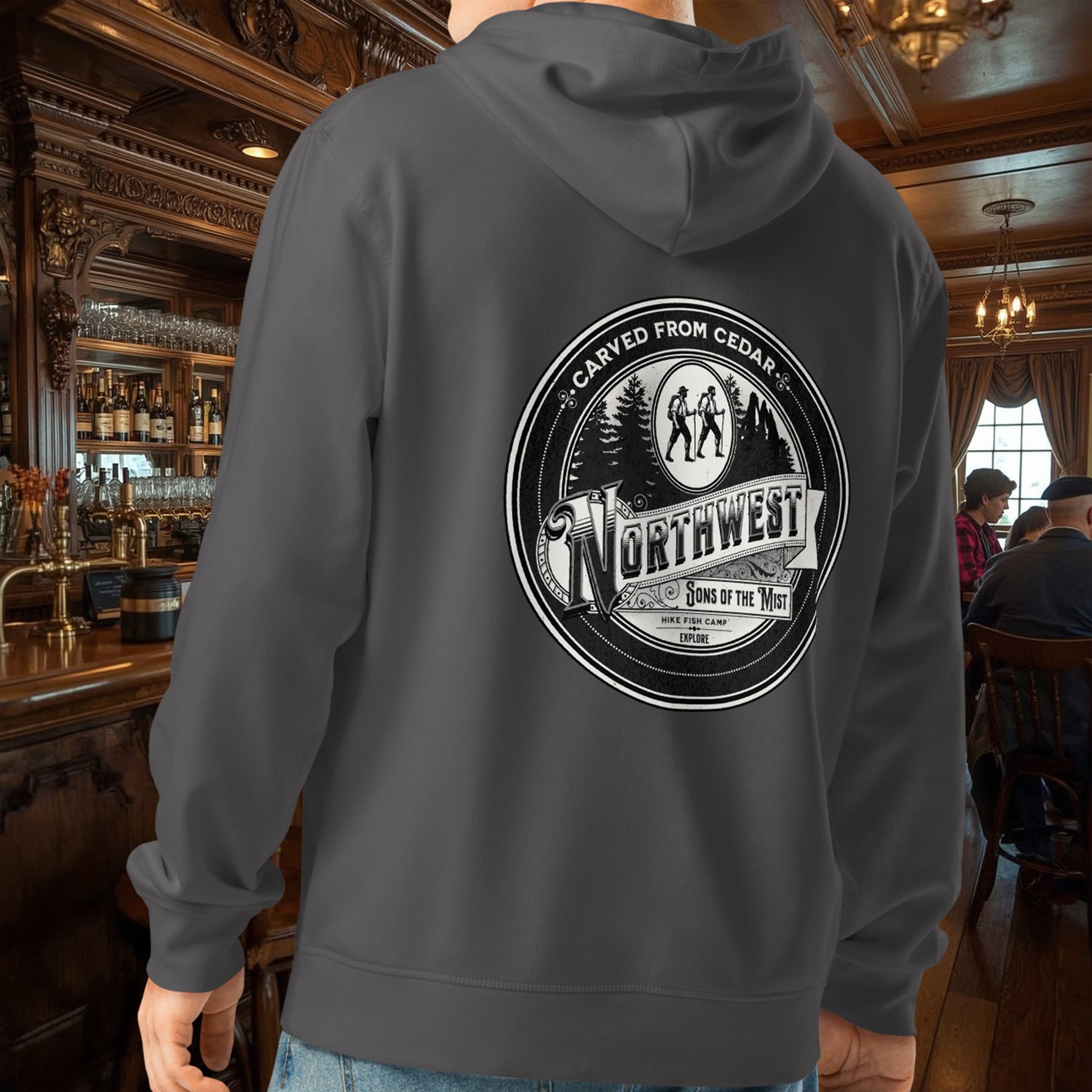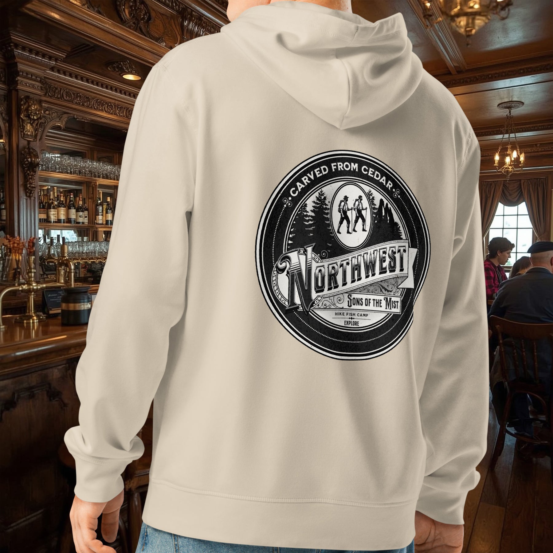 Some men aren't born—they're "Carved from Cedar." This mid-weight hoodie is a testament to the rugged, quiet strength found in the Pacific Northwest. Featuring a vintage-inspired, late 19th-century design, it's a piece that speaks to the timeless spirit of adventure. Made from a soft and sustainable blend of 80% organic cotton and 20% recycled polyester, it's the perfect layer for chilly days on the trail or cool evenings by the fire. This hoodie combines classic style with modern, eco-friendly performance. It's for the men who find their lineage not in a name, but in the mist and mountains of the Olympic Peninsula.