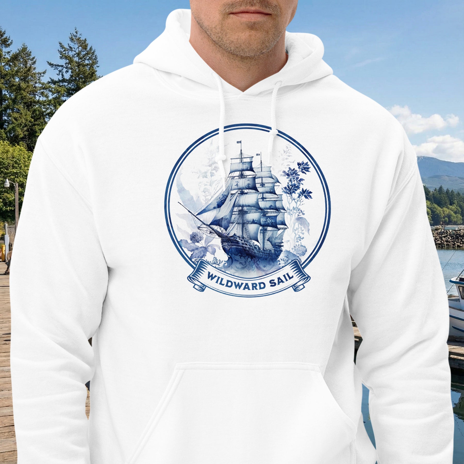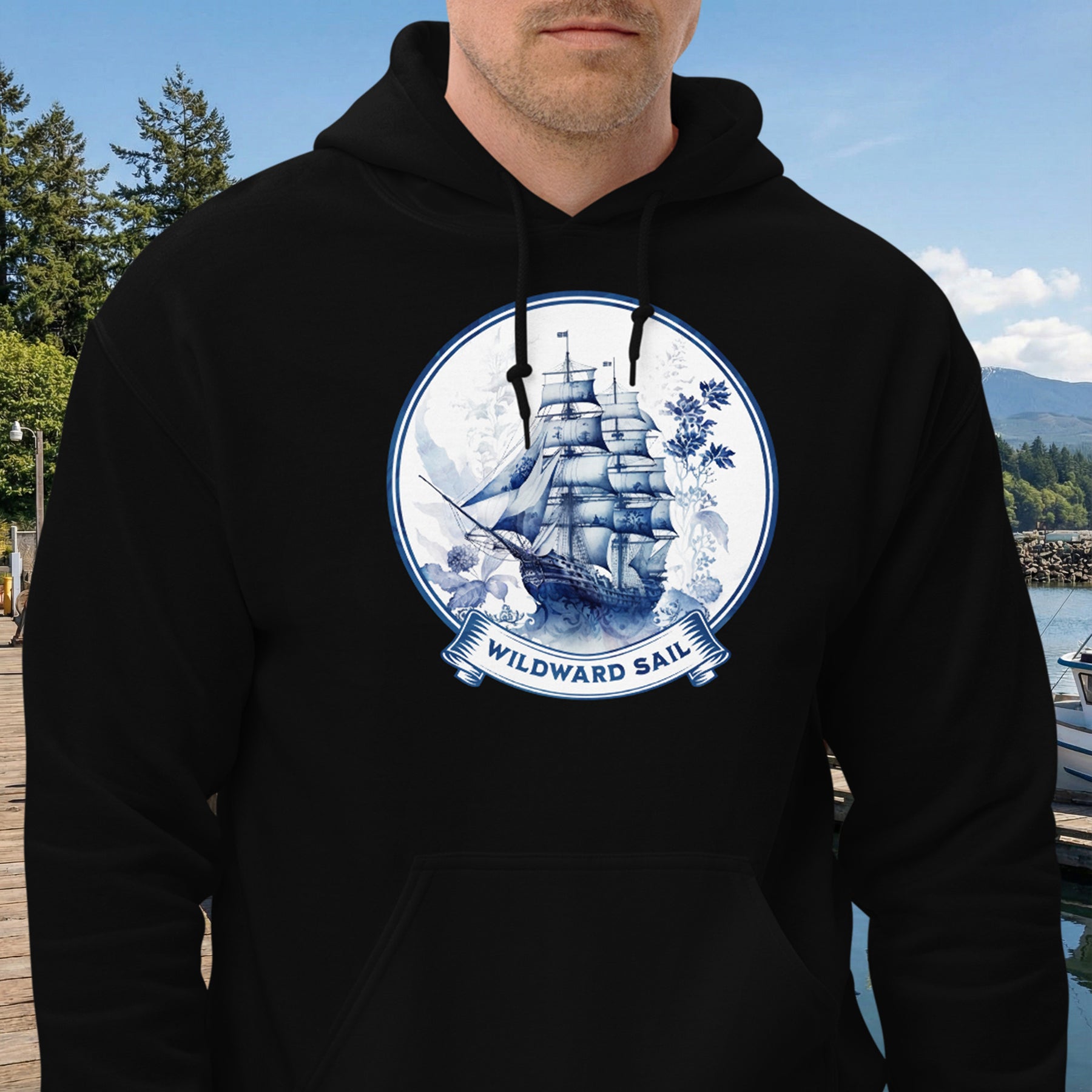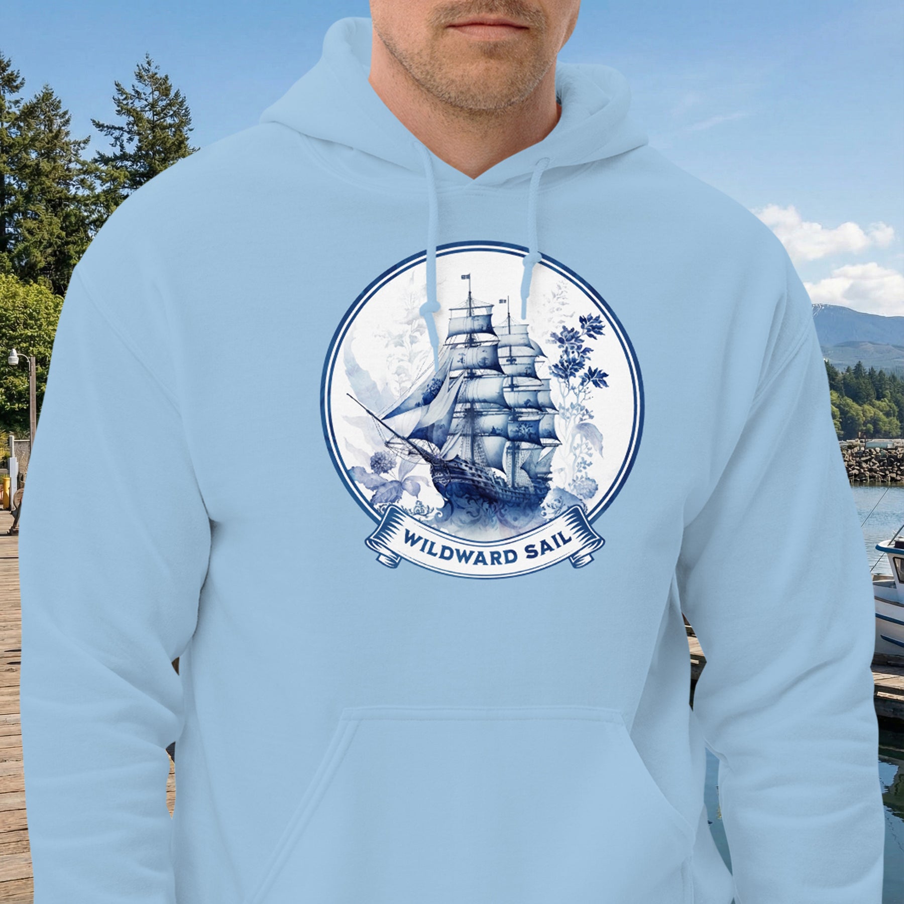 For some men, the destination isn’t a port—it’s the journey itself. This cozy, go-to hoodie captures that free spirit with a beautiful, blue-hued galleon design and the phrase "Wildward Sail." It’s a tribute to the men who navigate by instinct, charting their own course through the Pacific Northwest's coastal waters. Made from a soft, smooth blend of 50% pre-shrunk cotton and 50% polyester, this hoodie is the perfect choice for cooler evenings. The air-jet spun yarn gives it a great feel with reduced pilling, while a double-lined hood and front pouch pocket provide warmth and utility. With a quarter-turned body and double-needle stitching, it’s built to hold its shape through every storm and calm.