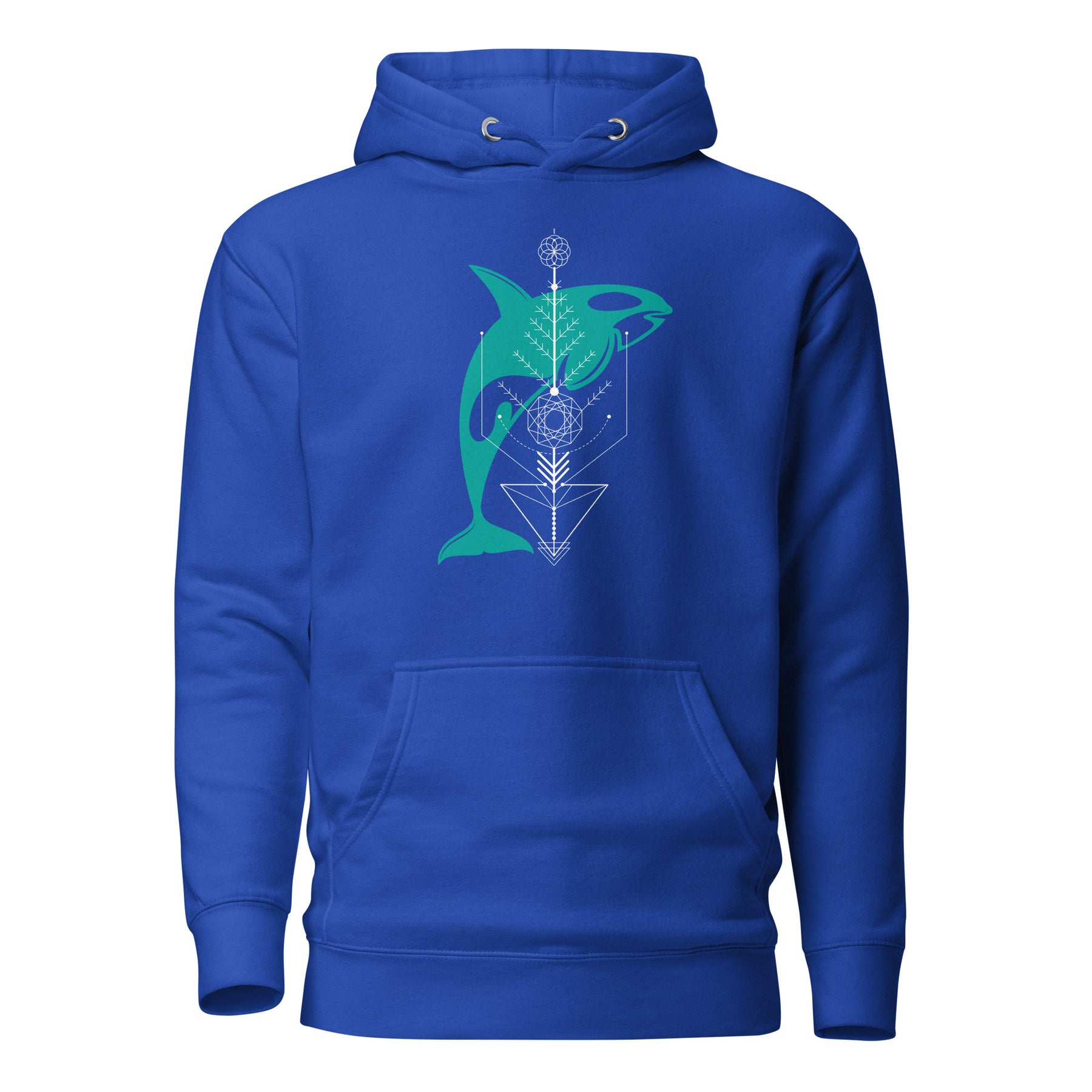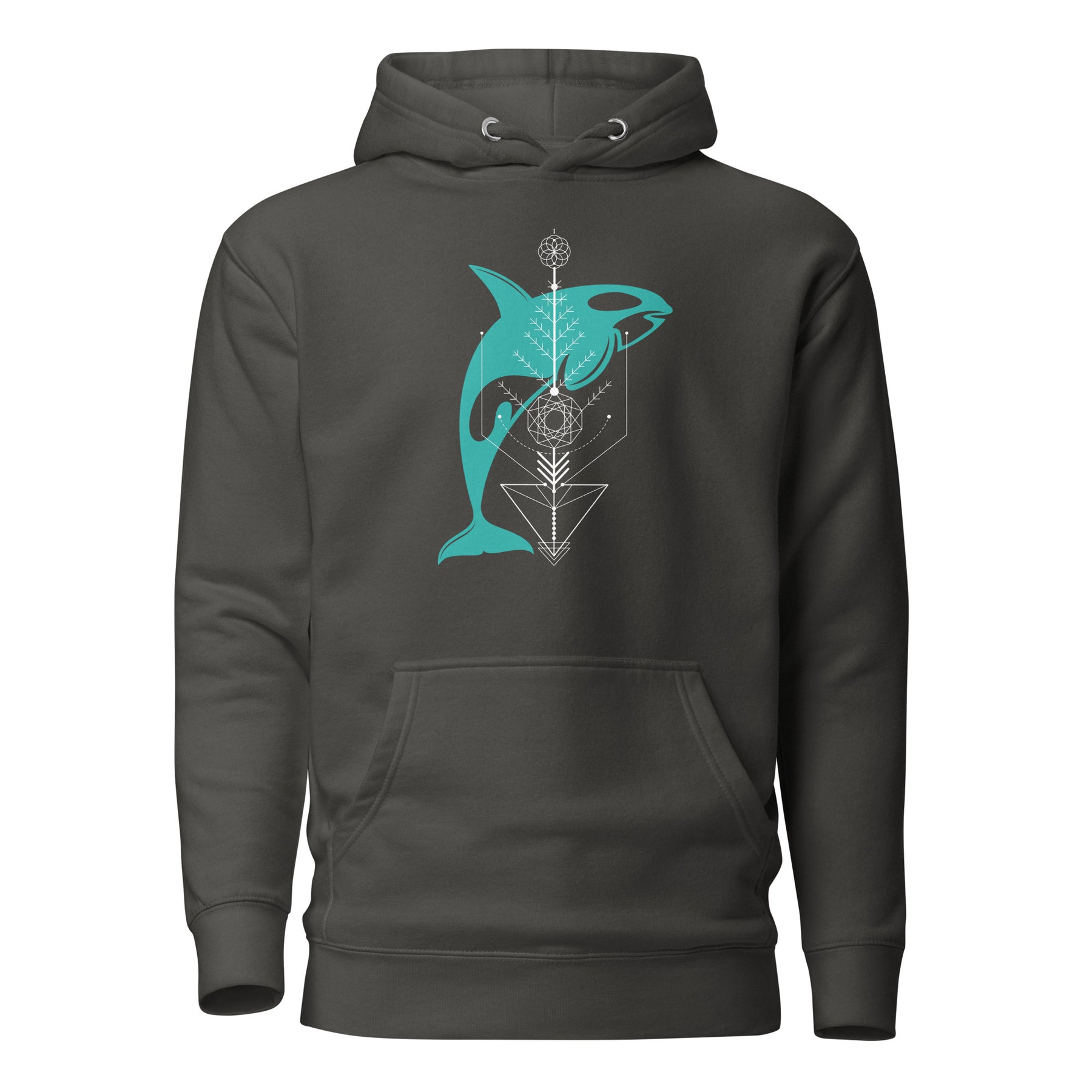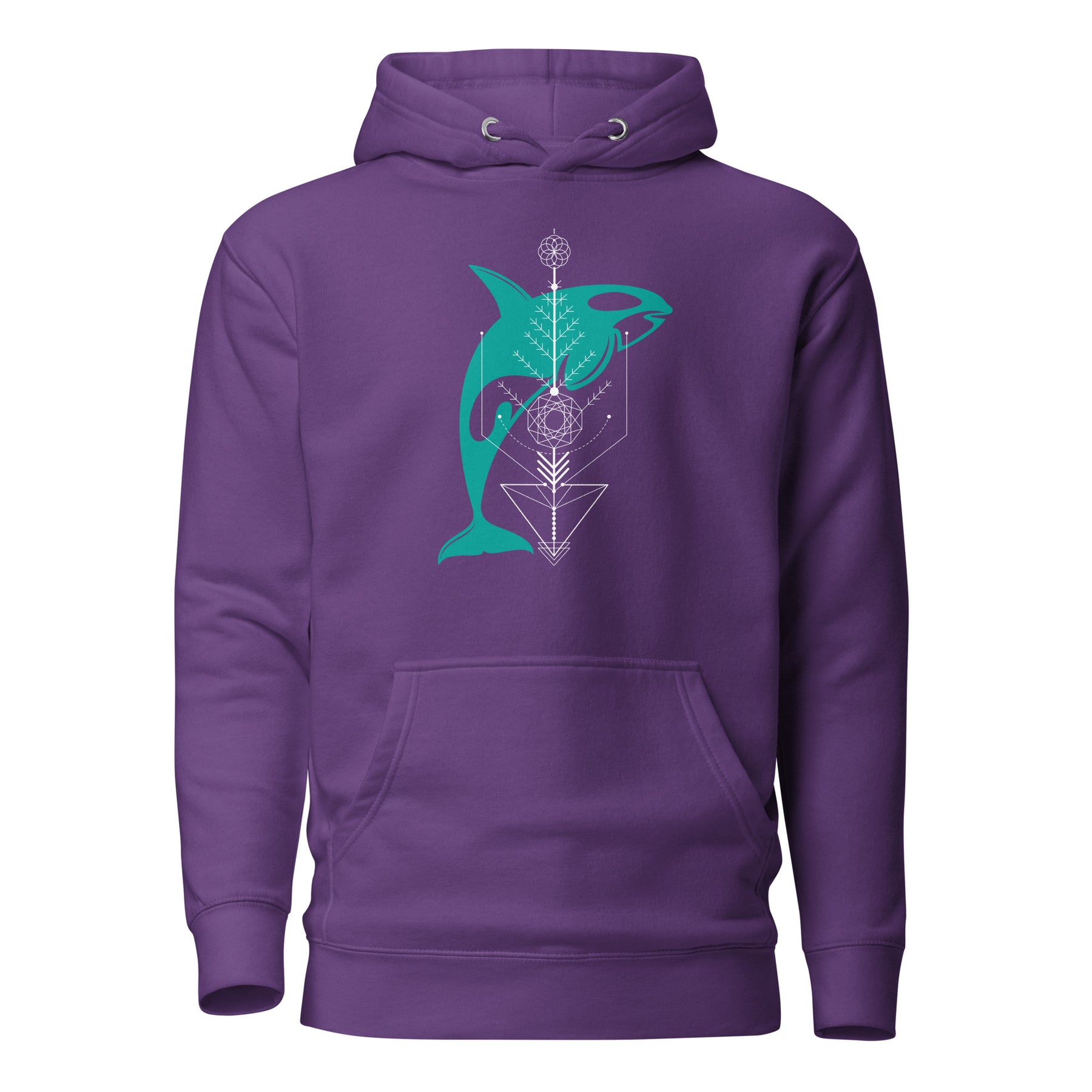 For the man who knows the deep, cold currents of the Salish Sea and the silent power that moves beneath the waves. This isn't just a hoodie; it's a tribute to the majestic orca, a sentinel of the depths, embodying the raw, wild spirit of the Olympic Peninsula's marine wilderness. The striking design—with its geometric elements—captures the mystery of these powerful creatures. Made with a 100% cotton face and a blend of 65% ring-spun cotton and 35% polyester, it offers unmatched softness. With a convenient front pouch pocket and a warm, 3-panel hood, it's perfect for chilly evenings spent watching the horizon.