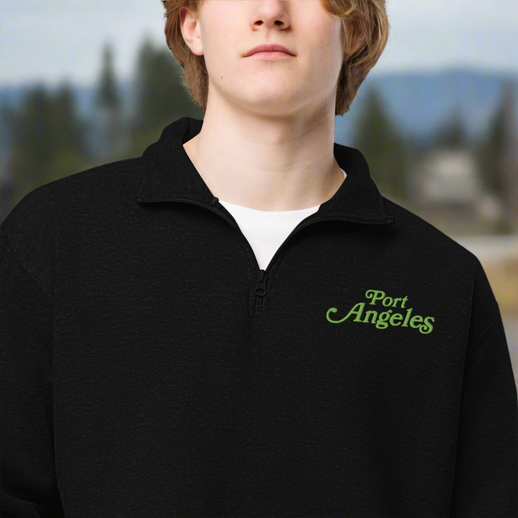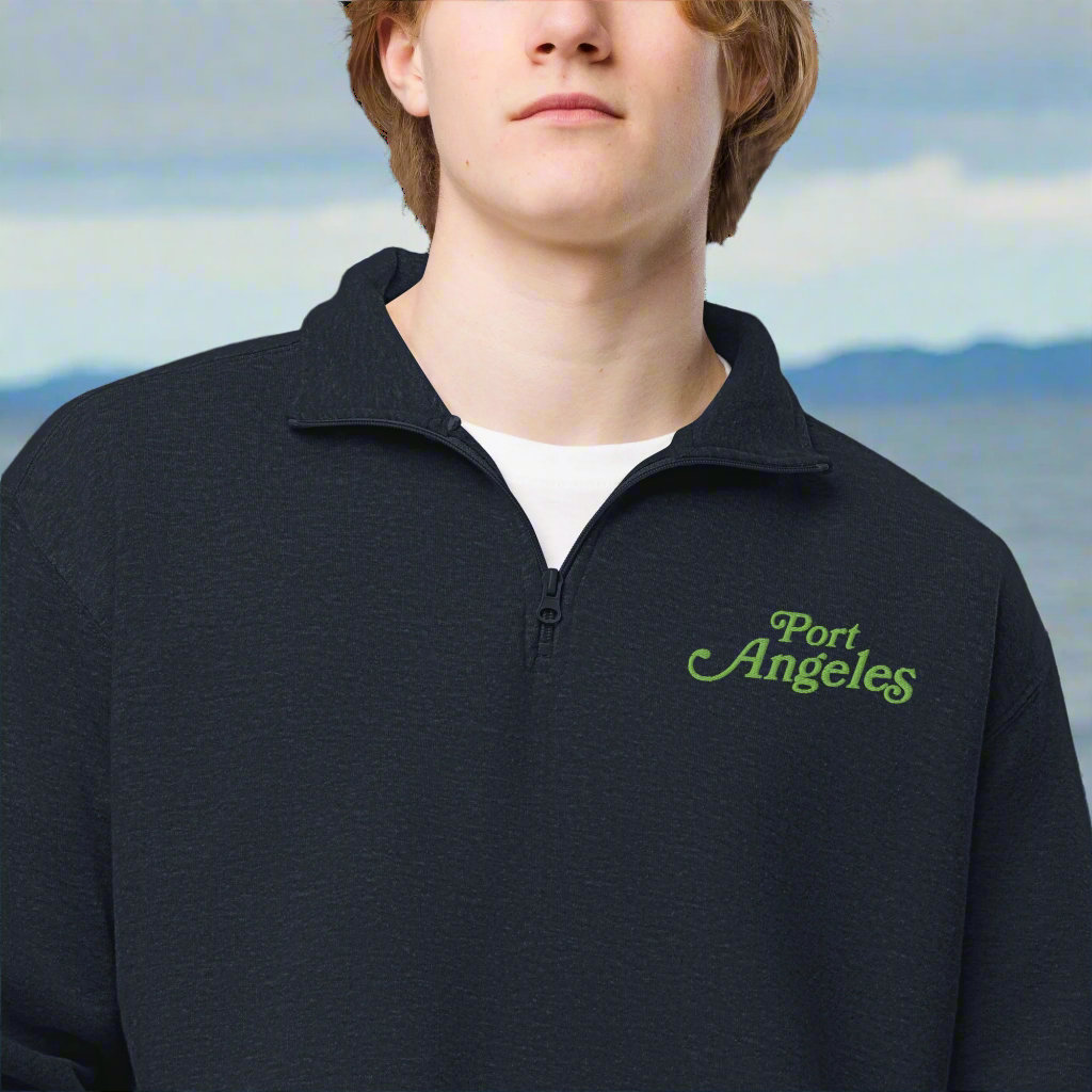 The fleece inside this pullover is as soft as the mist on a Port Angeles morning. It's built for those days when the air has a bite to it, whether you're strolling the waterfront or grabbing a beer at a local pub. The embroidered Port Angeles name honors one of the Peninsula's most rugged and vital towns. With a relaxed fit and a cozy, soft texture, this pullover is your go-to for anything from a chilly beach campfire to a lazy afternoon at home.