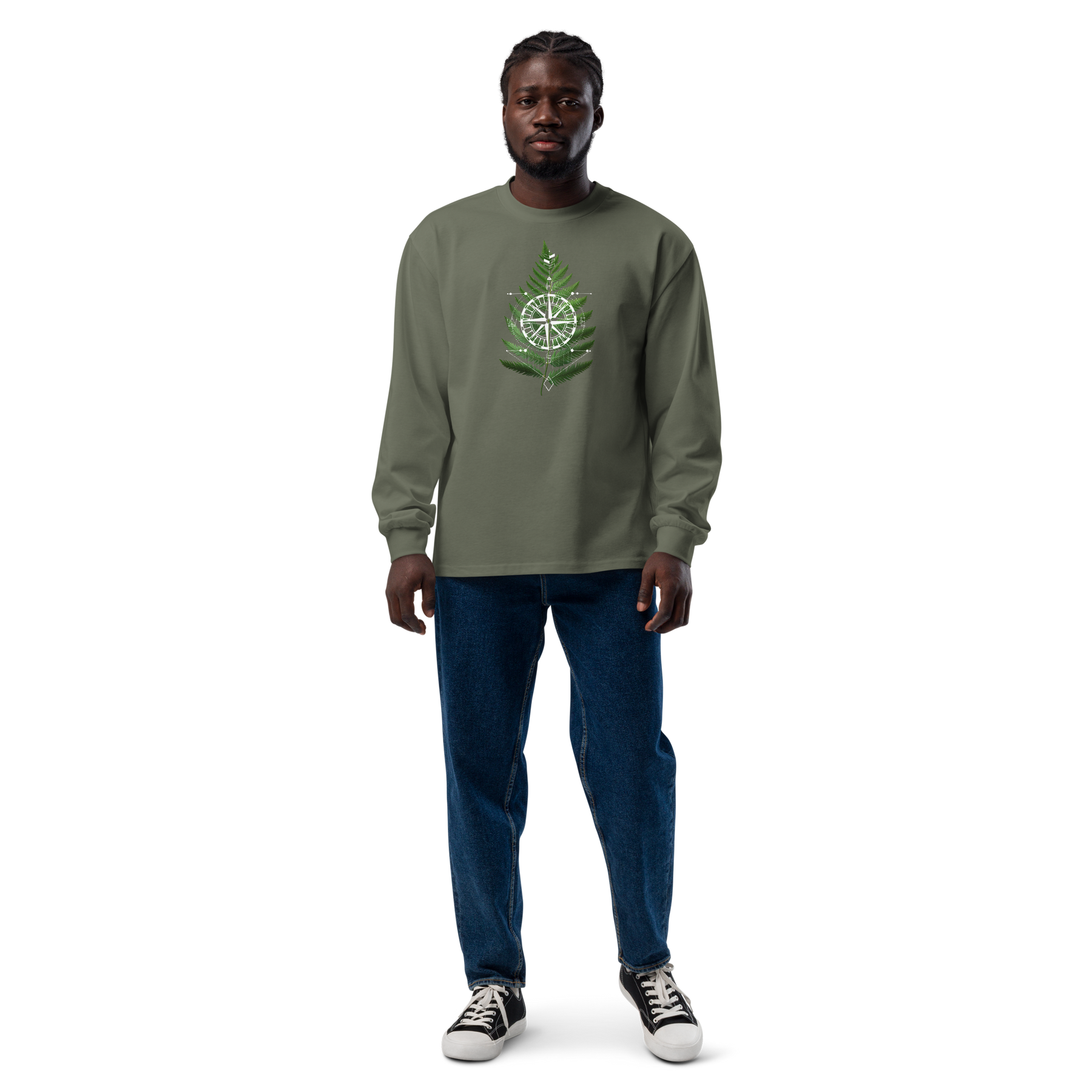 For the man who knows the forest has a pulse—a living compass that points to a world both seen and unseen. This isn't just a long sleeve tee; it's a guide for those who are gloriously lost in the Olympic Peninsula's dense, ancient woods. The Sacred Fern design, with its geometric compass overlay, is a tribute to the deep mysteries of the Hoh Rainforest and the subtle wisdom of the old-growth cedars. Made from 100% preshrunk carded cotton with a hefty fabric weight, this tee is built to last. Its relaxed fit and double-needle stitched hems ensure it will hold up through seasons of wear, whether you're on a trail or at the hearth.