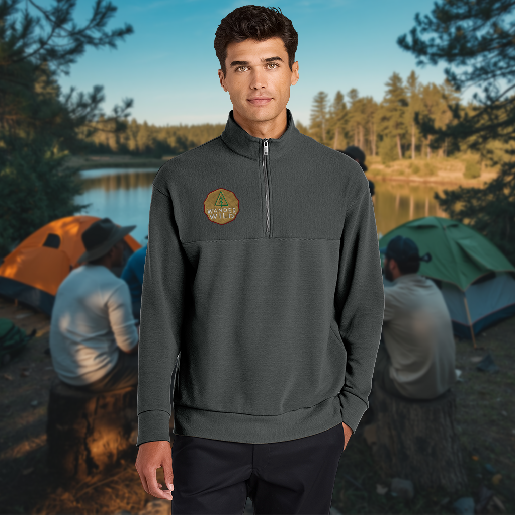 The Olympic Peninsula remembers who you are, but you have to get lost to find out. This isn't just a layer; it’s a commitment to that truth. Our Wander Wild Quarter-Zip is made for the man who follows his own compass, blending the old-growth comfort of cotton with the modern resilience of polyester and spandex. The Wander Wild patch is an embroidered badge for those who prefer untamed trails over paved roads. Its linear texture gives it a clean, rugged look, while the odor-resistant fabric means it's ready for a full day of backcountry exploration or a night gathered around a fire. The silver metal zipper adds a quiet, utilitarian polish, and the self-banded cuffs and hem keep you looking as put-together as you are gloriously lost.