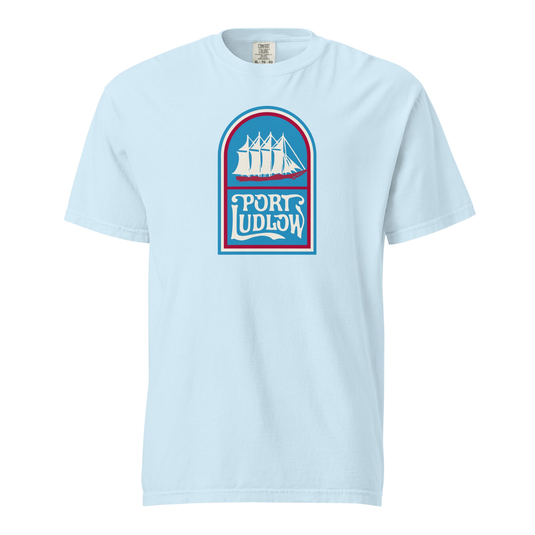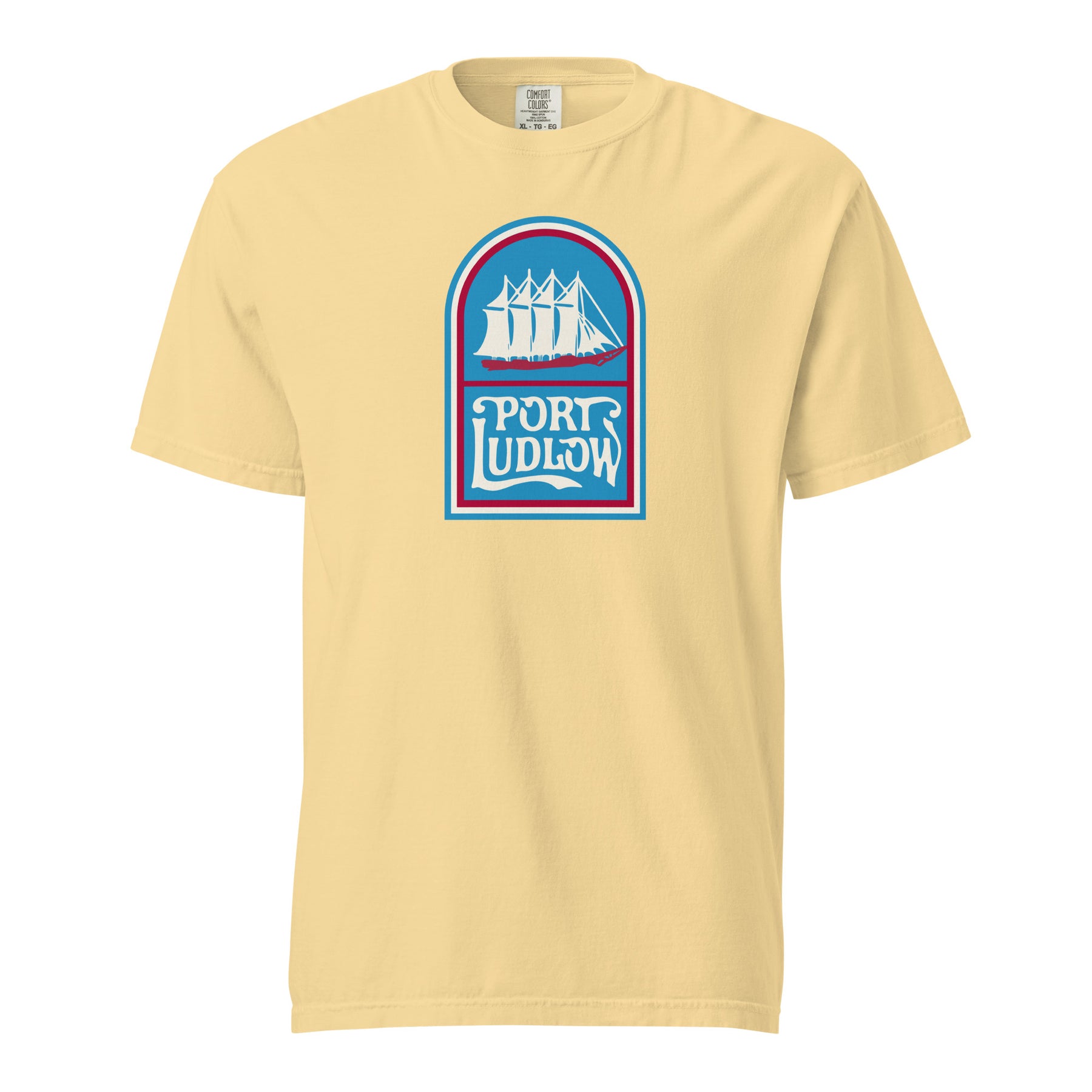 For the man who knows the quiet history of the place, where old mill towns give way to a different kind of life. This isn't just a tee—it's a tribute to a moment in time on the Olympic Peninsula. The 1968 Port Ludlow sign design is a nod to the past, when the promise of a new kind of community began to take shape on the shores of the inlet. Made from 100% ring-spun cotton with a hefty fabric weight and a garment-dyed finish, this tee has a soft, broken-in feel. With a relaxed fit and double-needle stitched hems, it's built to last through seasons of exploring where old stories meet new ones.
