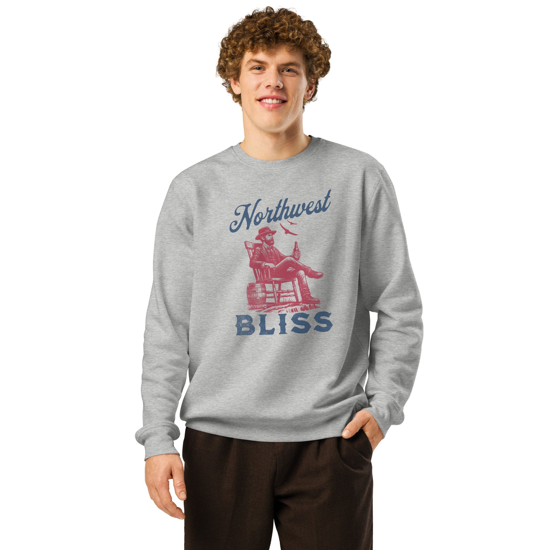 The Olympic Peninsula is where a man finds his bliss—sometimes on a mountaintop, and sometimes in a simple moment of peace. This organic sweatshirt captures that feeling with a vintage graphic of a relaxed man, beer in hand, and the phrase "Northwest Bliss." It's a tribute to the quiet satisfaction found after a long day of work or play. Crafted from a mid-weight blend of 80% organic cotton and 20% recycled polyester, it's the perfect layer for that in-between weather—when it's too warm for a full jacket but too cool for just a tee. The relaxed fit, set-in sleeves, and herringbone back neck tape ensure a comfortable, no-fuss style. With GOTS, OCS, and GRS certifications, this sweatshirt is made for men who find contentment in their connection to the land and who appreciate gear that is as authentic as they are.
