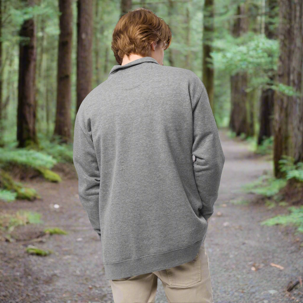 For the man who knows the murmurs of the Big Quilcene River and the feel of the Olympic Mountains at his back. This isn't just a pullover; it's a shield against the mist rising from the valley floor, a tribute to the deep stillness found where the river meets the bay. Made from a soft, plush blend of 65% cotton and 35% polyester, its classic, relaxed fit and Quilcene embroidery are for those who carry the whisper of the cedars and the cool air of the fjord with them. Featuring a matching color zipper and side-seamed construction, with ribbed cuffs and a waistband that holds its shape through seasons of wear.