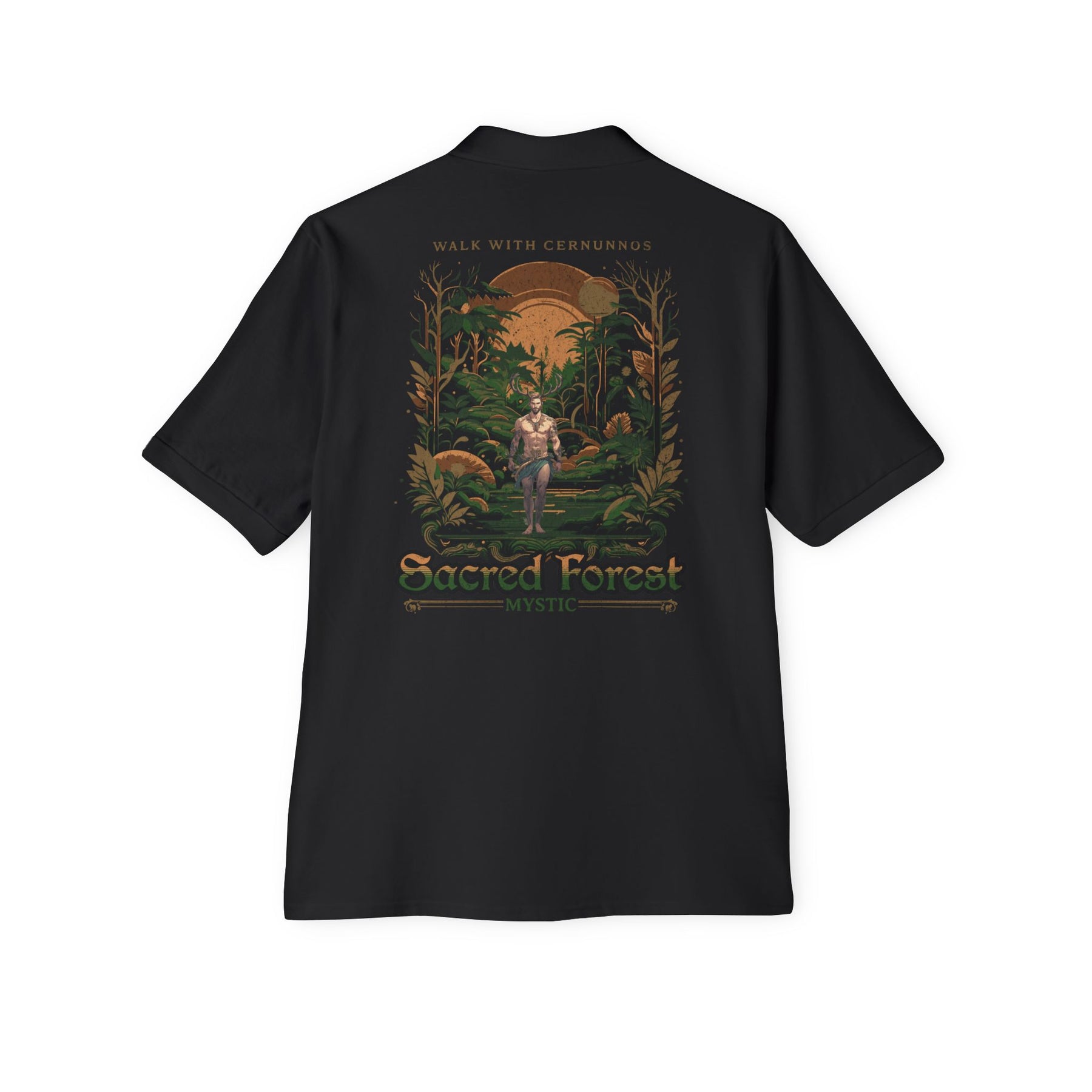Connect with the ancient spirit of the Olympic Peninsula's deep woods with the Cernunnos Sacred Forest Piqué Polo. This isn't just a polo; it's a piece for men who walk between worlds, honoring the untamed essence of Cernunnos and the subtle mysteries of the forest. Featuring a design that evokes a sacred forest mystic, this polo is crafted from 100% cotton piqué fabric for a comfortable, textured feel that moves with you. The ribbed sleeve bands and welt knit collar ensure a polished look that resists curling, while the 3-button placket with pearlized buttons adds a touch of classic sophistication. Durable and timeless, it's perfect for casual gatherings or moments of quiet contemplation amidst the cedars.