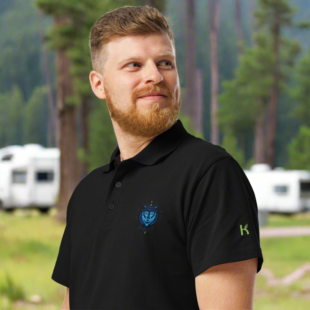 Wolf Geometric Emblem Premium Pique Polo Shirt