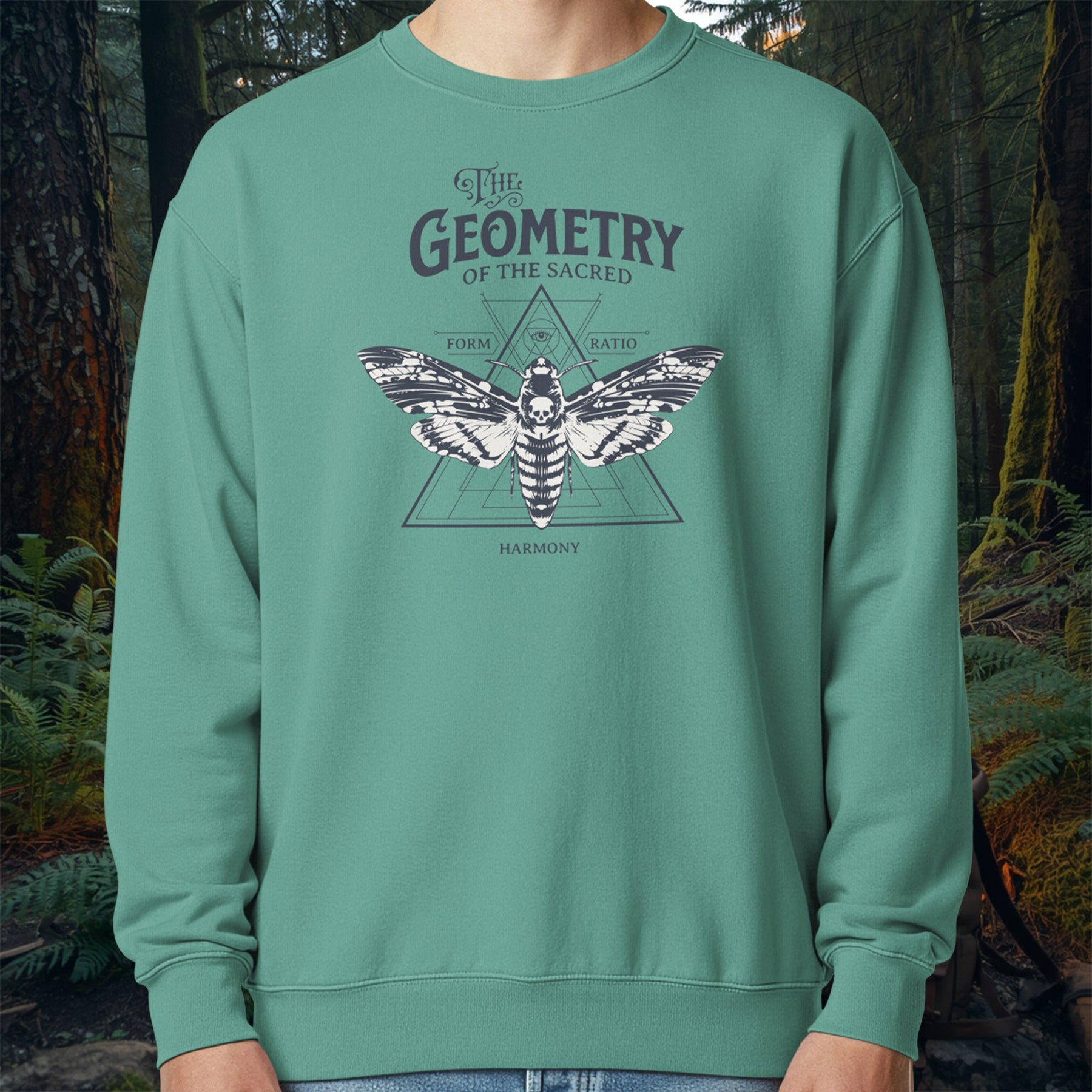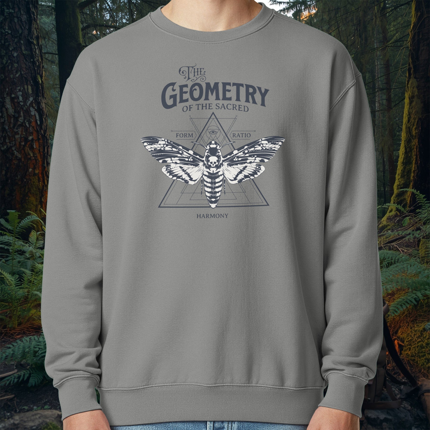 Nature on the Peninsula is a masterwork of complex design, where every cedar needle and moth wing follows an ancient, mathematical order. The Sacred Moth Garment-Dyed Fleece features "The Geometry of the Sacred" graphic—a tribute to the hidden ratios and harmonies that govern the wild. This sweatshirt is built like a thrifted gem, offering a soft, worn-in feel and a vintage-washed aesthetic that suggests a lifetime of mountain exploration.