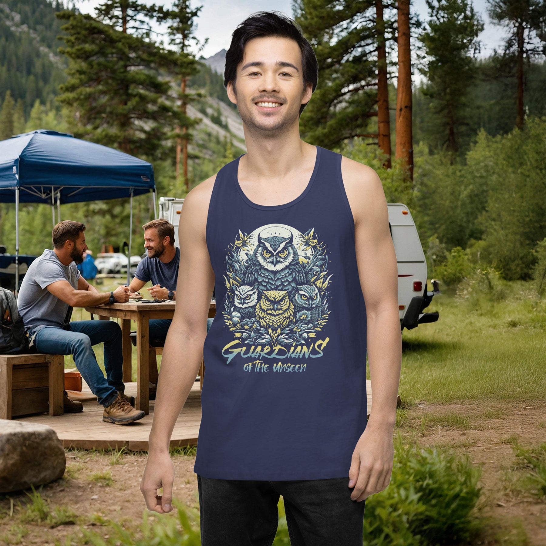 Embrace mystery with the Guardians of the Unseen Tank, featuring a striking owl design. This premium-quality tank top is crafted for men who value both style and durability, offering exceptional softness and smoothness.