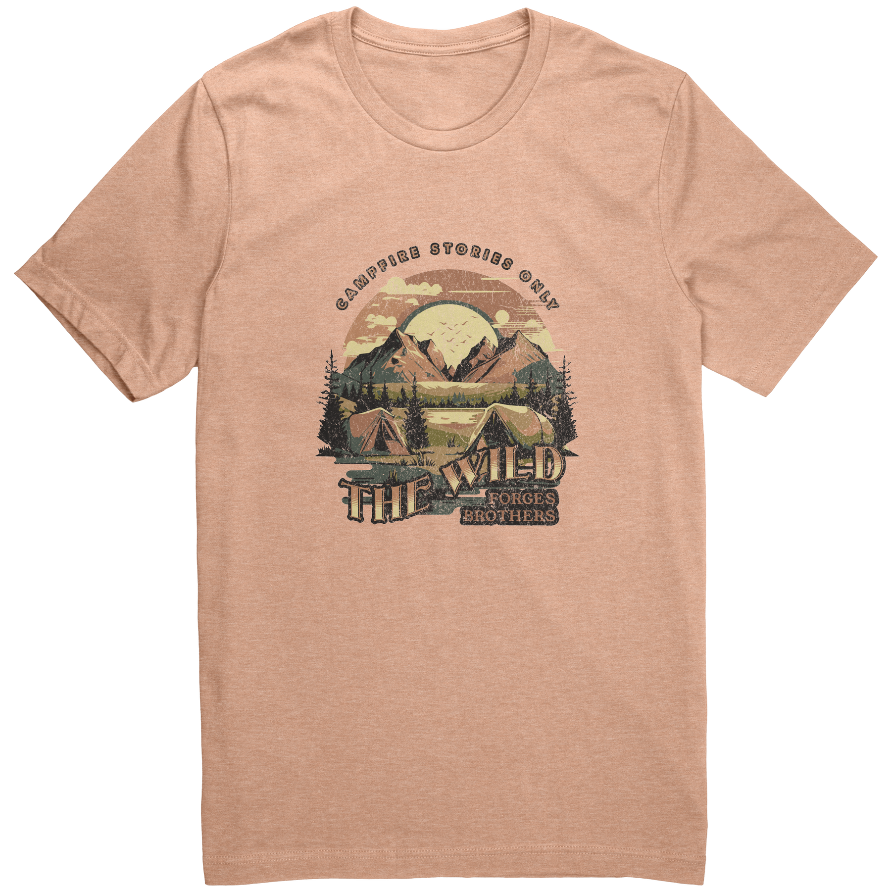 Gather around the fire with this Campfire Stories tee, featuring an illustrated old-time camping scene and the words “Campfire Stories Only” and “The Wild Forges Brothers.” This nostalgic design captures the essence of brotherhood and adventure, perfect for anyone who cherishes the great outdoors.
