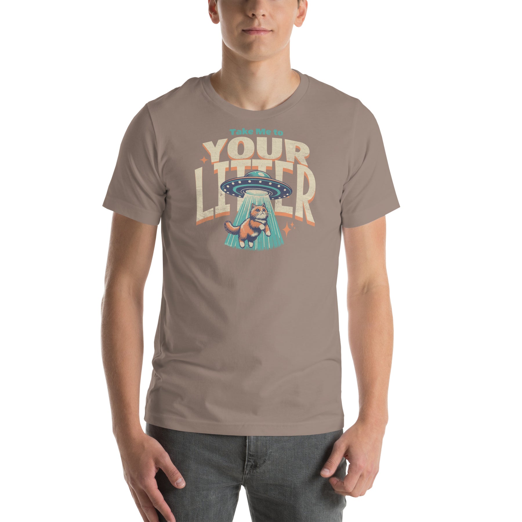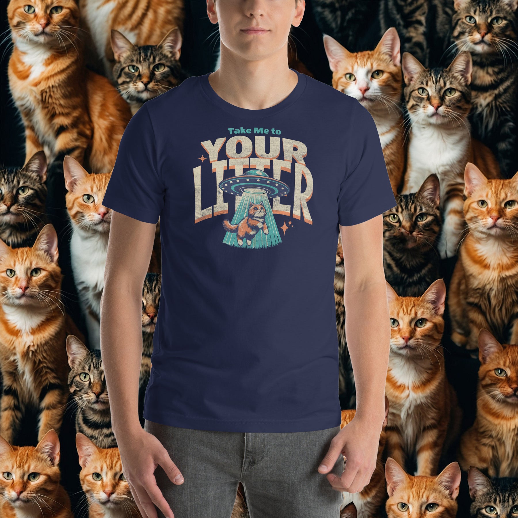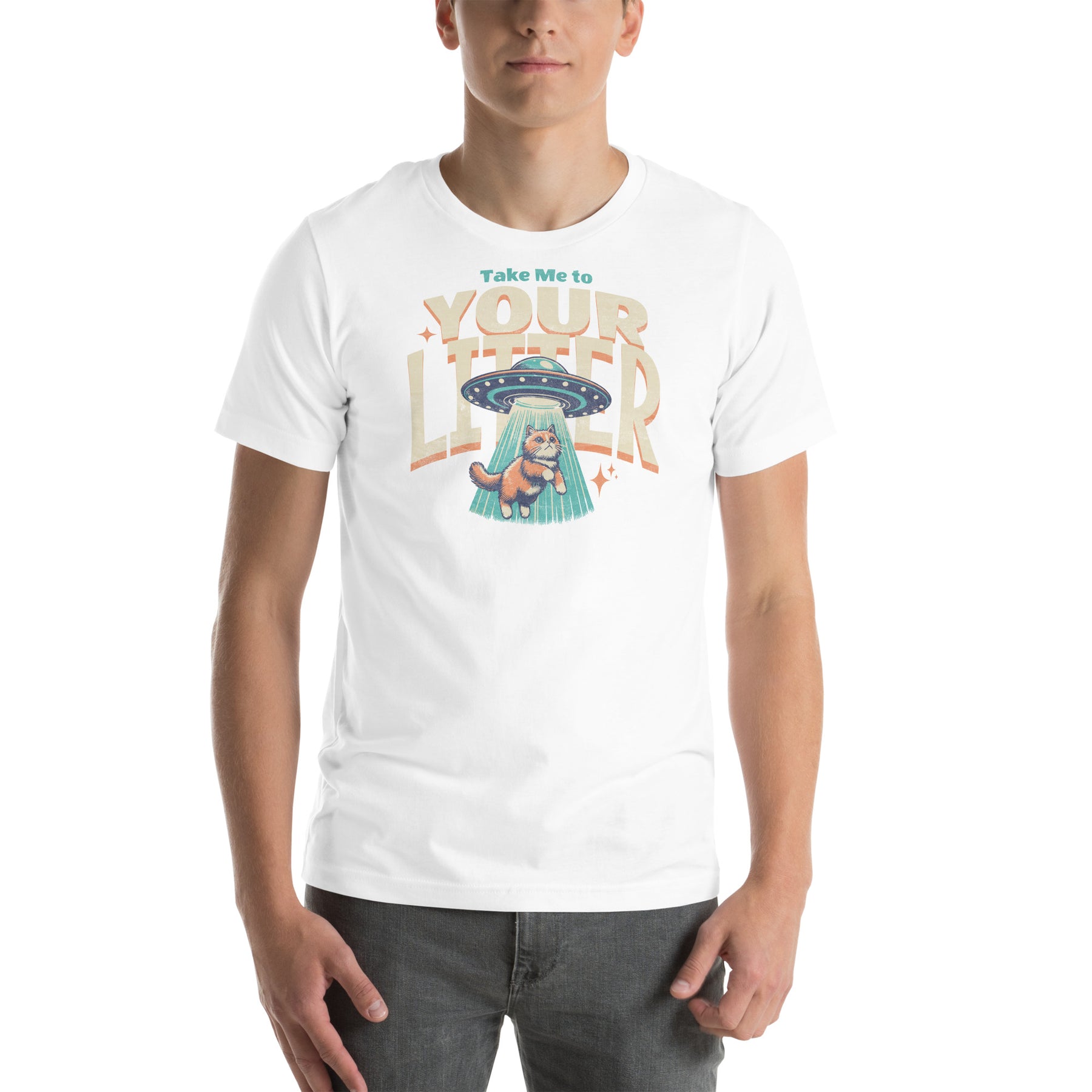 Even the most intrepid explorers of the Olympic Peninsula know there are mysteries beyond the ancient cedars—and sometimes, those mysteries involve a very particular kind of extraterrestrial encounter. Our Feline Abduction Tee captures a moment of cosmic absurdity: a UFO beaming up a cat, with the urgent, intergalactic plea, "Take Me To Your Litter." This shirt is for the man who appreciates a good laugh, the loyalty of a four-legged friend, and the boundless potential of the unexplained.
