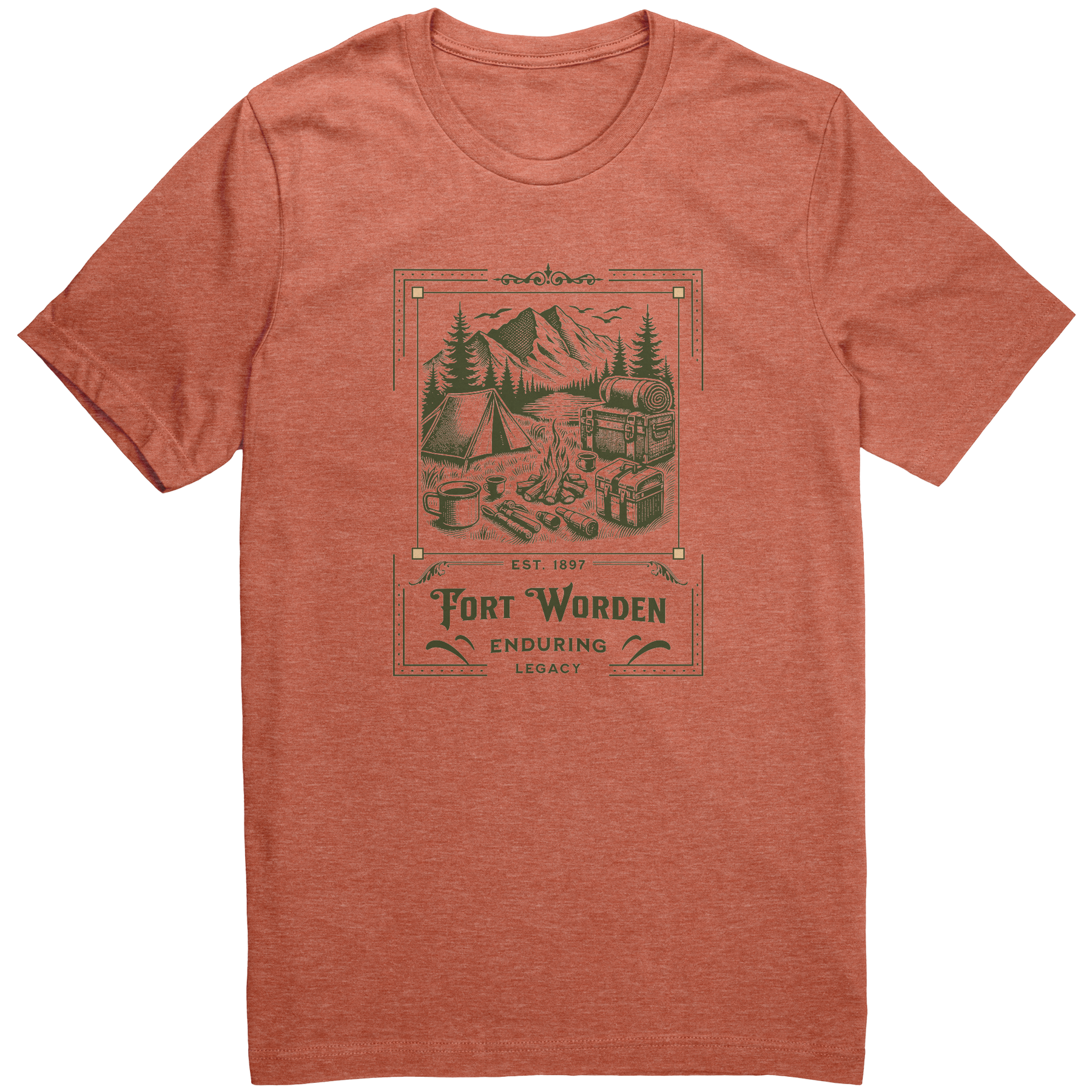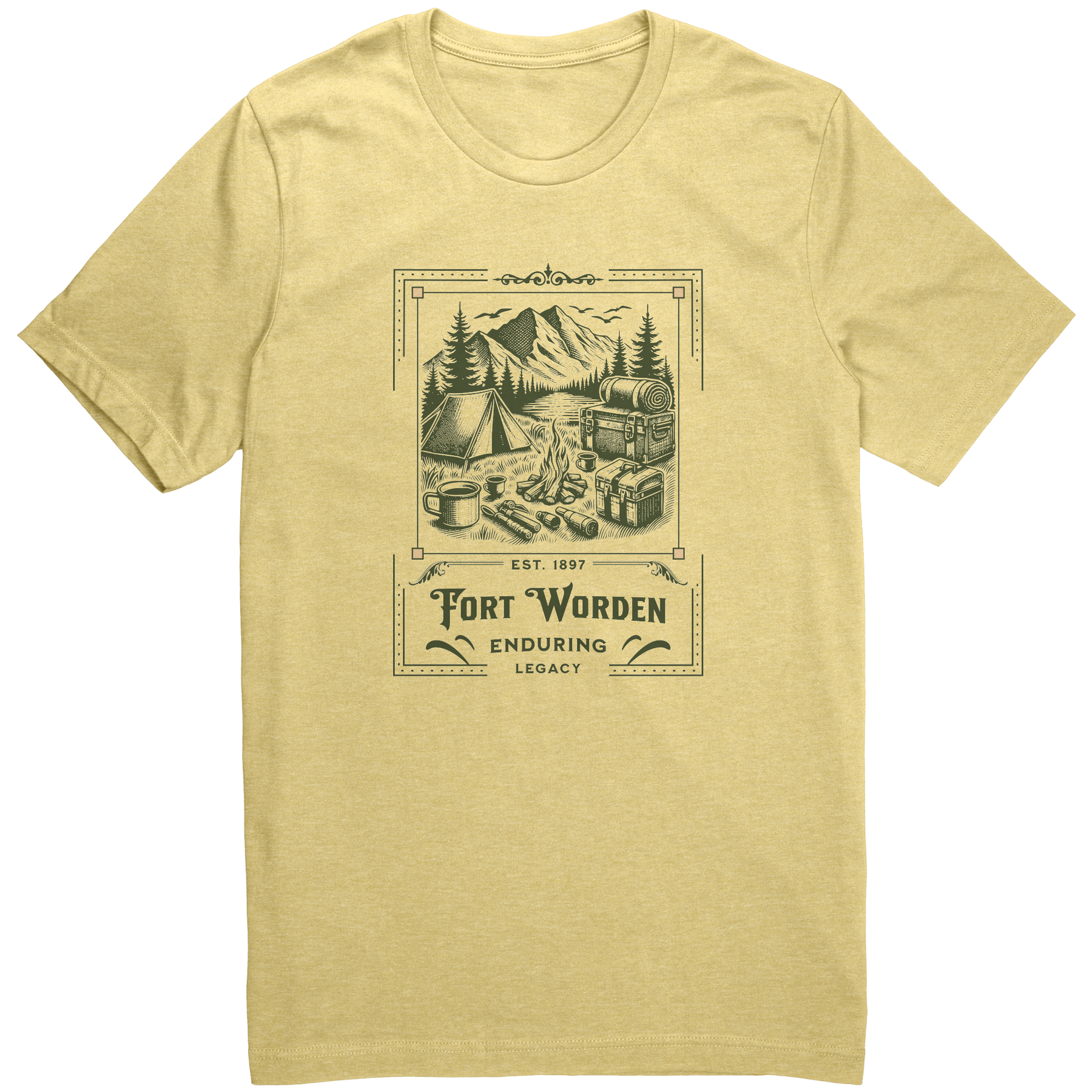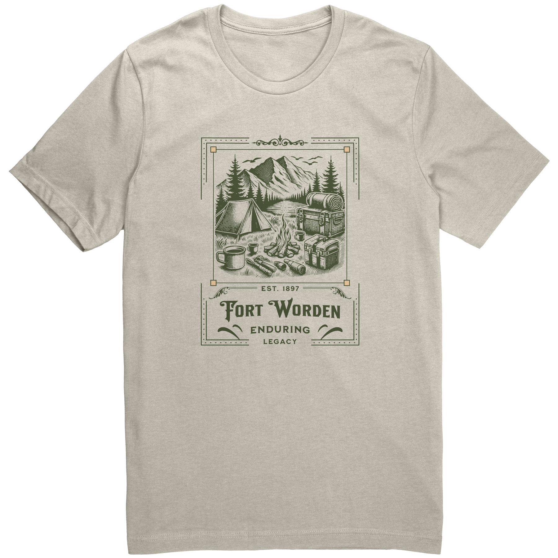 Celebrate the enduring legacy of Fort Worden with this retro-inspired camping tee, featuring a nostalgic design that captures the spirit of outdoor adventure. Made from a premium blend of 52% airlume combed and ring-spun cotton and 48% polyester, this 4.2 oz (US) / 7 oz (CA) shirt is soft, durable, and perfect for any rugged lifestyle.