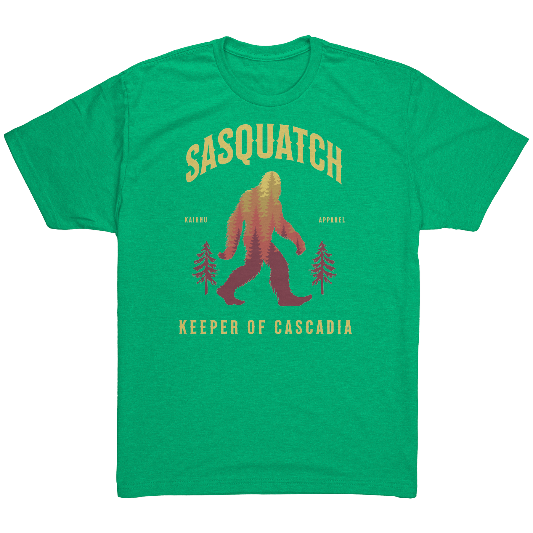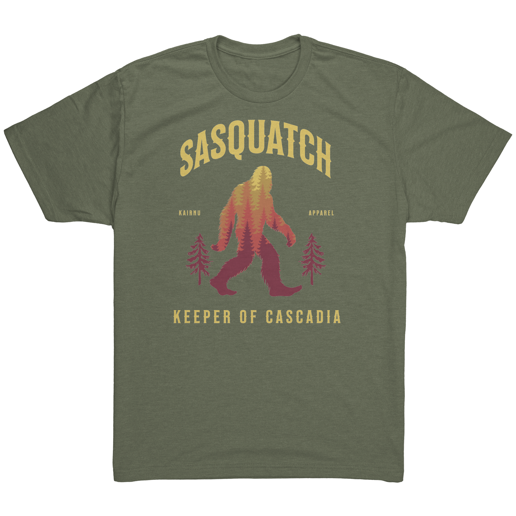 The design captures the Keeper mid-patrol: one broad palm resting on a nurse log like a bureaucrat at his desk, eyes reflecting the last glow of a dying campfire. "Keeper of Cascadia" isn’t a title—it’s a job description for the entity who re-stacks trail cairns tourists disturb and confiscates unattended granola bars.