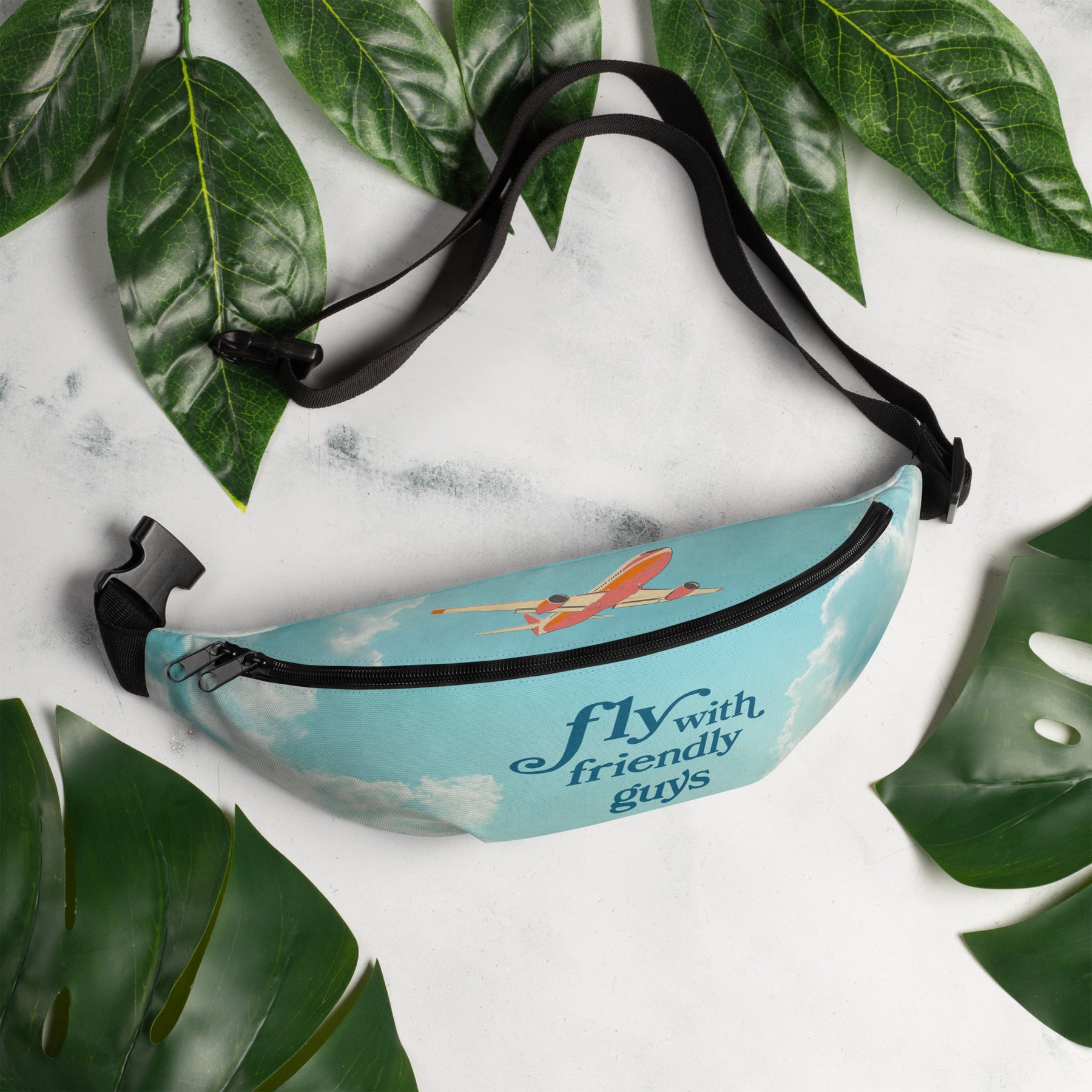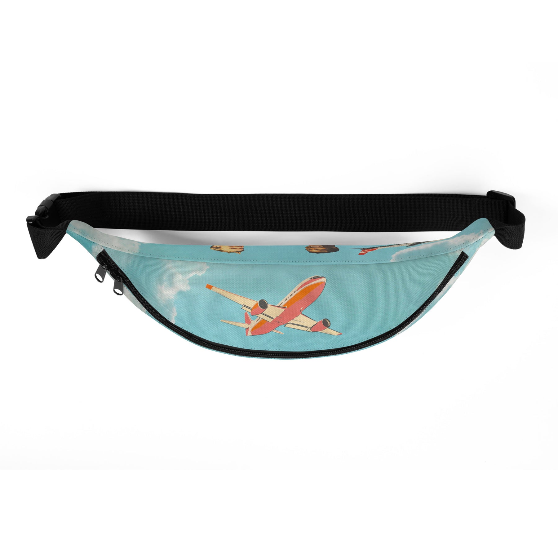 Channel the golden age of air travel with this rugged waist pack, featuring retro aviation graphics outside and a secret surprise inside—a vintage-style Bigfoot stowaway peeking from the inner pocket, his fur peeking out like he just hitched a ride on a Lockheed Electra. Perfect for jet-setters who know the best flights are the ones with unexplained cargo.