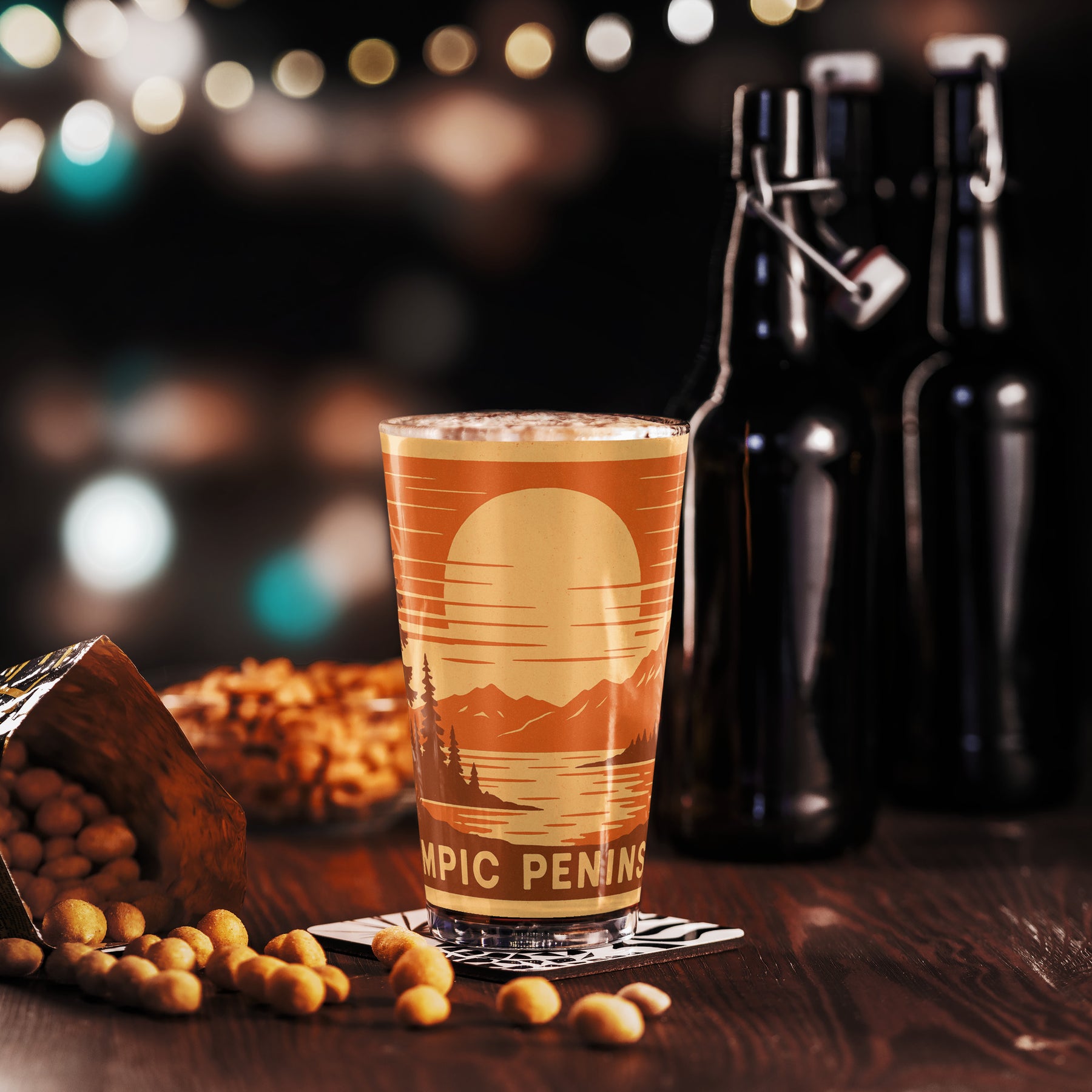 Raise a glass to the Olympic Peninsula’s timeless beauty with this minimalist shaker pint glass. Featuring a striking sunset design that captures the essence of the peninsula’s rugged coastlines and misty forests, this 16 oz glass is a celebration of the wild and the elemental.