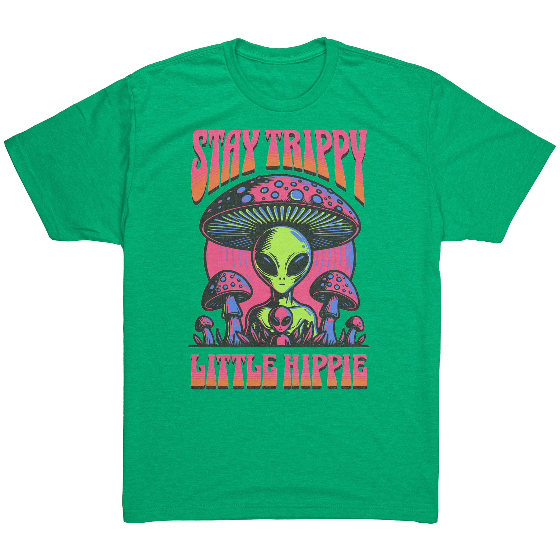 Step into a cosmic forest with the Alien Fungi T-Shirt, a psychedelic tribute to the mysteries of the unseen. This 60s-inspired design features bright colors, mushrooms, and an alien donning a mushroom cap hat, blending the earthly and the extraterrestrial in one surreal vision.