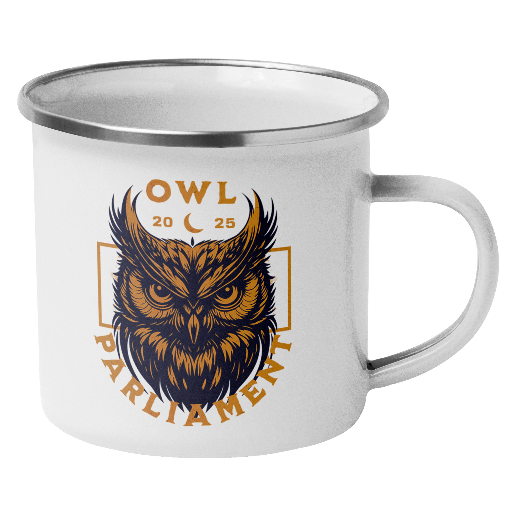 Owl Parliament Enamel Camping Mug – 12oz Stainless Steel